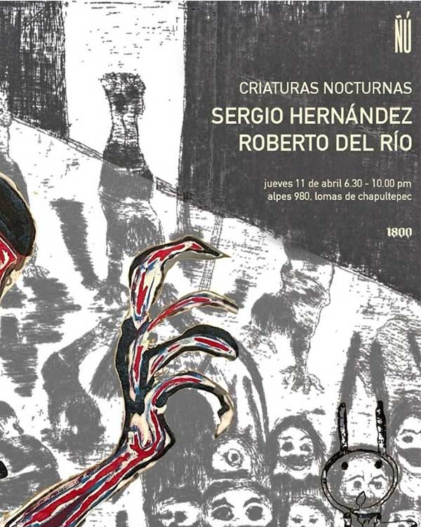 El próximo 11 de abril se inaugura ‘Criaturas nocturnas’, un diálogo entre la obra de los artistas mexicanos Sergio Hernández y Roberto del Río. Te esperamos a partir de 18:30 h - 22 h en Alpes 980, Lomas de Chapultepec.