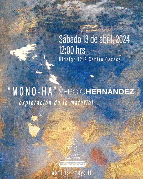 El Taller de Grabado Fernando Sandoval le hace la invitación a la primera exhibición del año titulada “Mono-Ha / exploración de lo material” de la mano del artista oaxaqueño Sergio Hernández, Su trayectoria en el taller ha sido participe de esta exposición, tomando como objeto principal las placas de metal utilizadas durante los años que ha realizado grabado en este taller, y las cuales para esta muestra ha intervenido. La cita es el sábado 13 de abril a las 12:00 hrs, en la galería anexa al Taller Sangfer (calle Hidalgo 1212 Centro). En esta ocasión nos acompañará el músico Nayuta Tsugaoka ( @brisas_de_okinawa ) quien nos ambientará con música tradicional japonesa de la isla de Okinawa junto a su instrumento “Sanshin”. *El concierto será a partir de las 12:30 pm. Por cierto, el taller ya cuenta con número propio del cual podremos estar invitándole a nuevas exhibiciones, atendiendo dudas, comentarios o preguntas que le surjan. ¡Reciba un saludo y le esperamos!